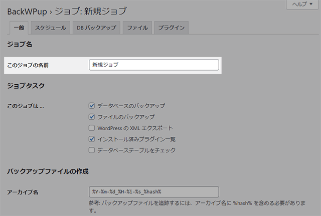 BackWPupの設定の手順は以下の通りです。