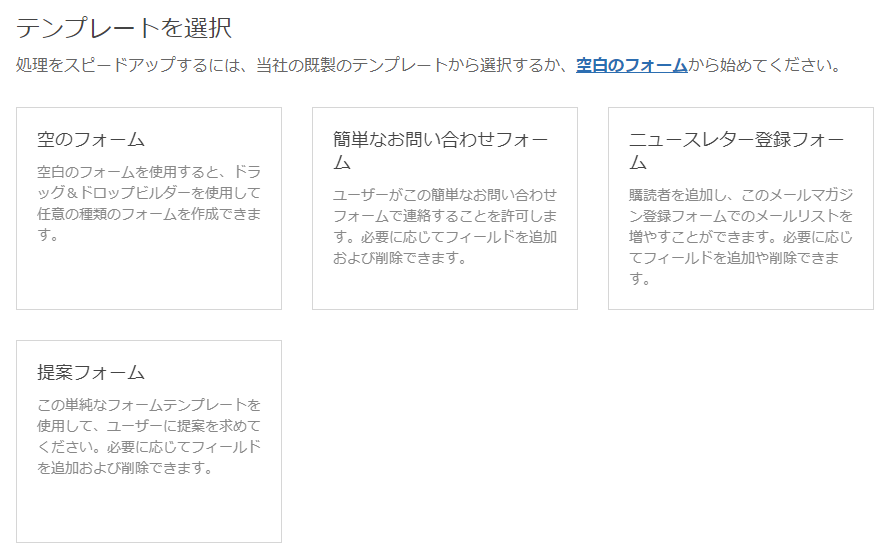 テンプレートを選択する画面になるので「簡単なお問い合わせフォーム」をクリックしましょう。