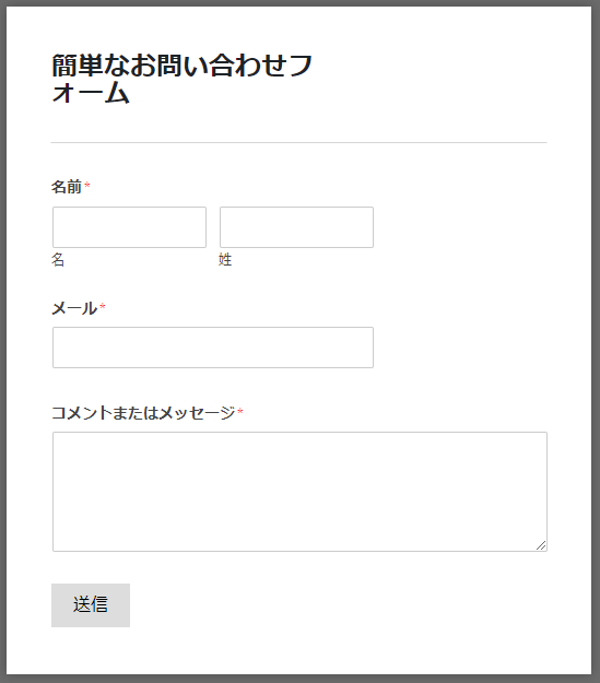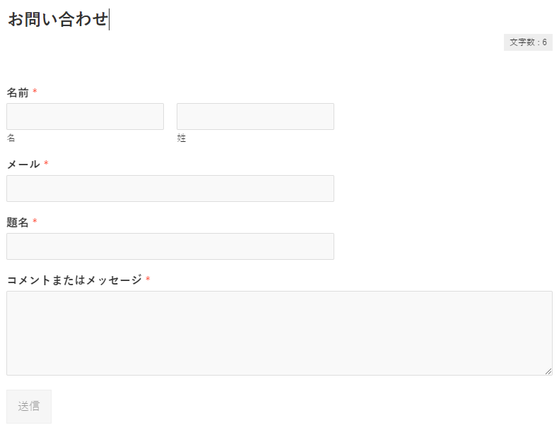 お問い合わせページを公開すると下図のようなフォームが出来上がっています。