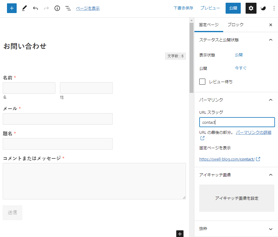 URLスラッグを「contact」に変更し公開しましょう。